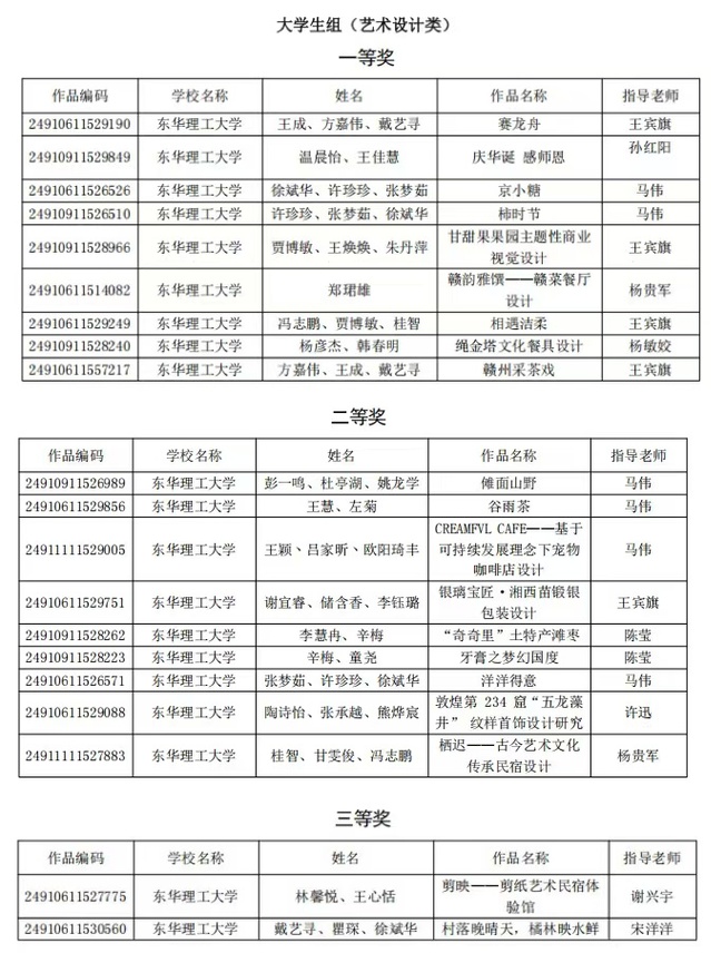 近日,江西省第十二届“艺德杯”师生艺术作品展示活动圆满落幕。爱体育官方网站获大学生组(绘画类)一等奖1项、二等奖2项、三等奖1项;大学生组(摄影类)三等奖1项;大学生组(艺术设计类)一等奖9项、二等奖9项、三等奖9项;学校获“优秀组织奖”。