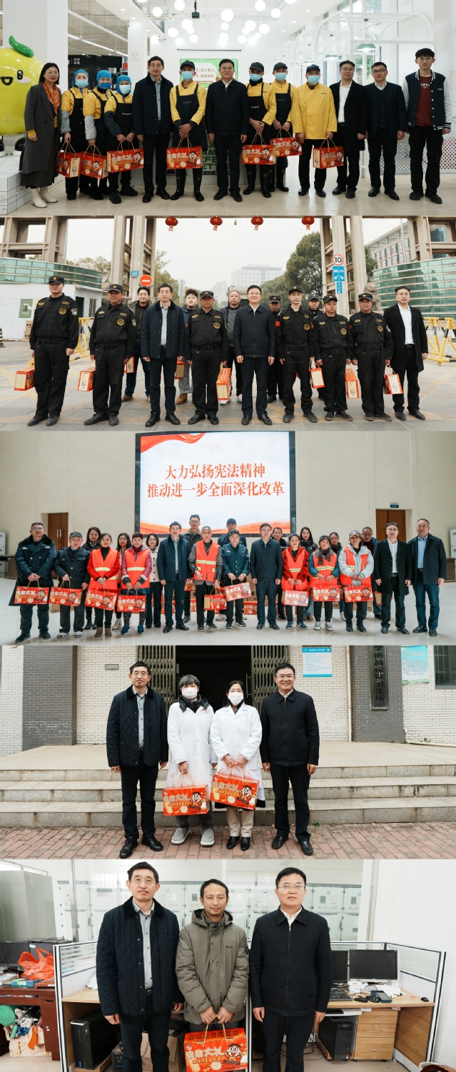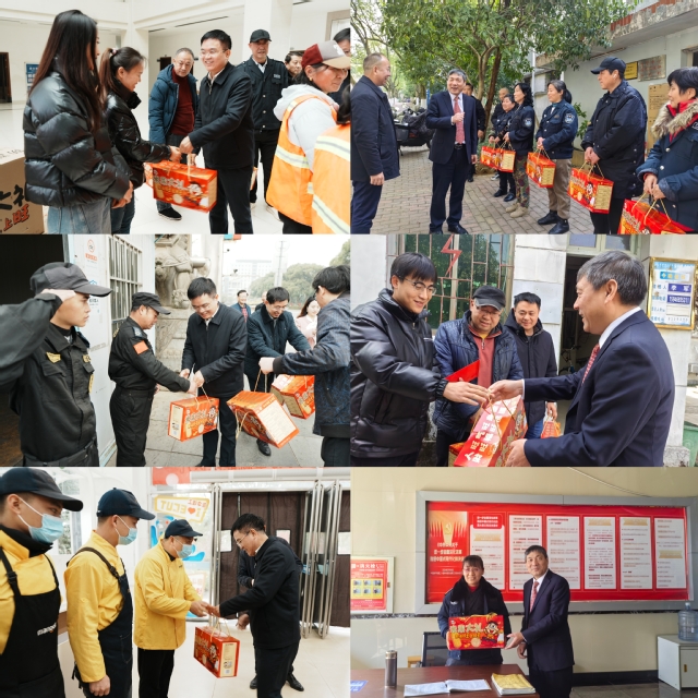 1月23日至24日,在乙巳年春节即将来临之际,爱体育官方网站党委书记张福庆,党委副书记、校长罗仙平分别带队赴南昌、抚州校区,深入基层一线单位,看望慰问寒假期间坚守服务岗位的教职员工,给大家送去学校党委、行政的关怀和祝福。校党委常委、副校长夏菲、邓居智,校党委常委金建华参加。