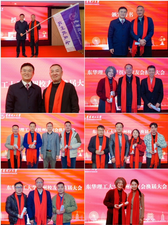 学校领导及相关部门负责人、抚州校友会会长为第二届理事会成员颁发聘书。