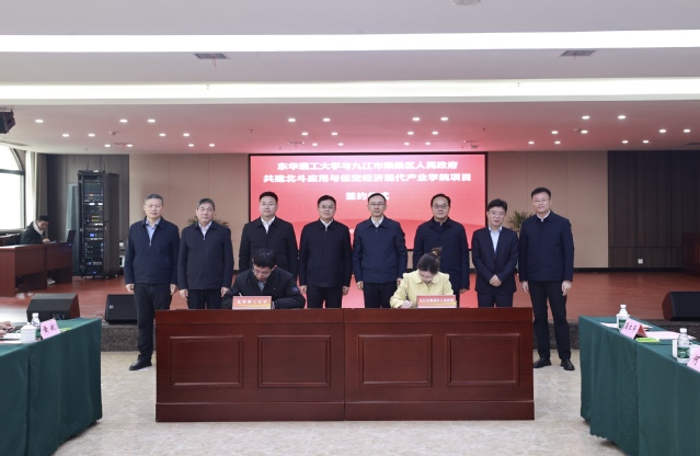 张福庆向省委军民融合办、九江市委市政府长期以来给予学校发展的关心支持表示感谢。他指出,北斗应用与低空经济现代产业学院的建立,是积极响应国家“深化产教融合、服务现代化产业体系”号召的生动实践,也是“九江产业需求侧”与“东华理工科教供给侧”的精准适配,开启了校地融合赋能现代产业的新征程。学校将在共建协议框架下,不断深化产教融合、校地融合,着力构建“三链贯通”的创新生态,共同答好教育科技人才三位一体改革发展的江西答卷。