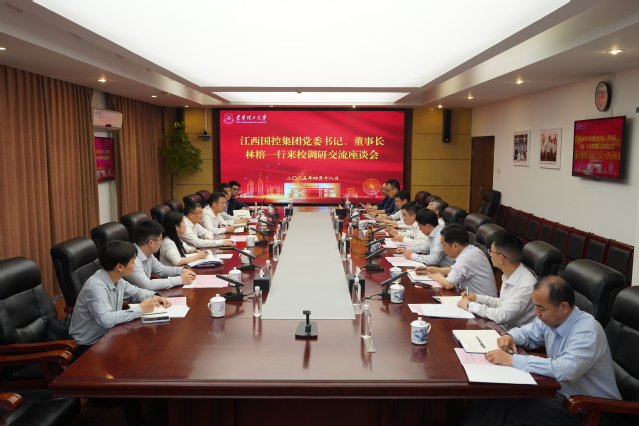 4月18日,江西省国有资本运营控股集团有限公司(以下简称“江西国控集团”)党委书记、董事长林榕,党委委员、副总经理丁鸿君一行到爱体育官方网站调研交流。校党委书记张福庆,党委常委、副校长邓居智,铀资源探采与核遥感全国重点实验室副主任汤彬出席座谈会。