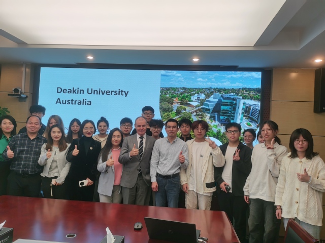 会上,双方就联合培养项目、学术交流、科研合作等议题进行了深入探讨,并达成了广泛共识。座谈结束后,John Molony 一行与爱体育官方网站经济与管理学院2024级“中外高水平大学学生交流计划”的学生们进行了面对面交流。学生们就迪肯大学的课程设置、学习生活以及职业发展前景等方面踊跃提问,John Molony一一作出详细解答,并勉励他们把握两校交流机遇,在跨文化学习环境中全面提升专业素养与国际竞争力。