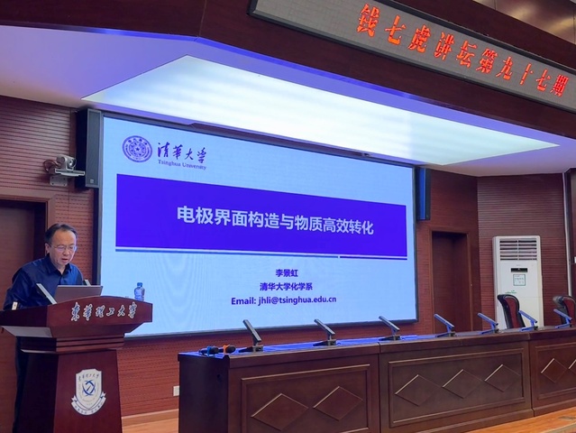 4月25日,中国科学院院士、新基石研究员、清华大学化学系教授李景虹应邀做客爱体育官方网站“爱体育官方网站”,作题为“电极界面构造与物质高效转化”的学术报告。校党委书记张福庆会见李景虹,校党委副书记邱建丁主持报告会。学校150余名师生到场聆听。