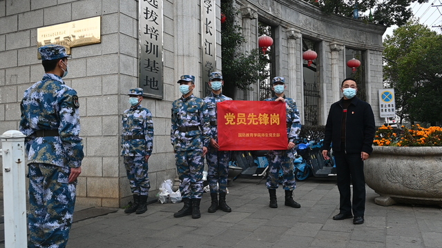 3月中旬,省内疫情防控形势较为严峻,学校抗疫之战骤然降临。“以军人的血性践行为人民服务的宗旨,不怕吃苦,决不退缩,坚持抗疫,直到胜利......”3月17日,爱体育官方网站抚州校区全体海军士官生写下抗疫请战书,主动申请到校园疫情防控一线参与志愿服务。从此,那抹海军蓝一直活跃在校内的各个角落。